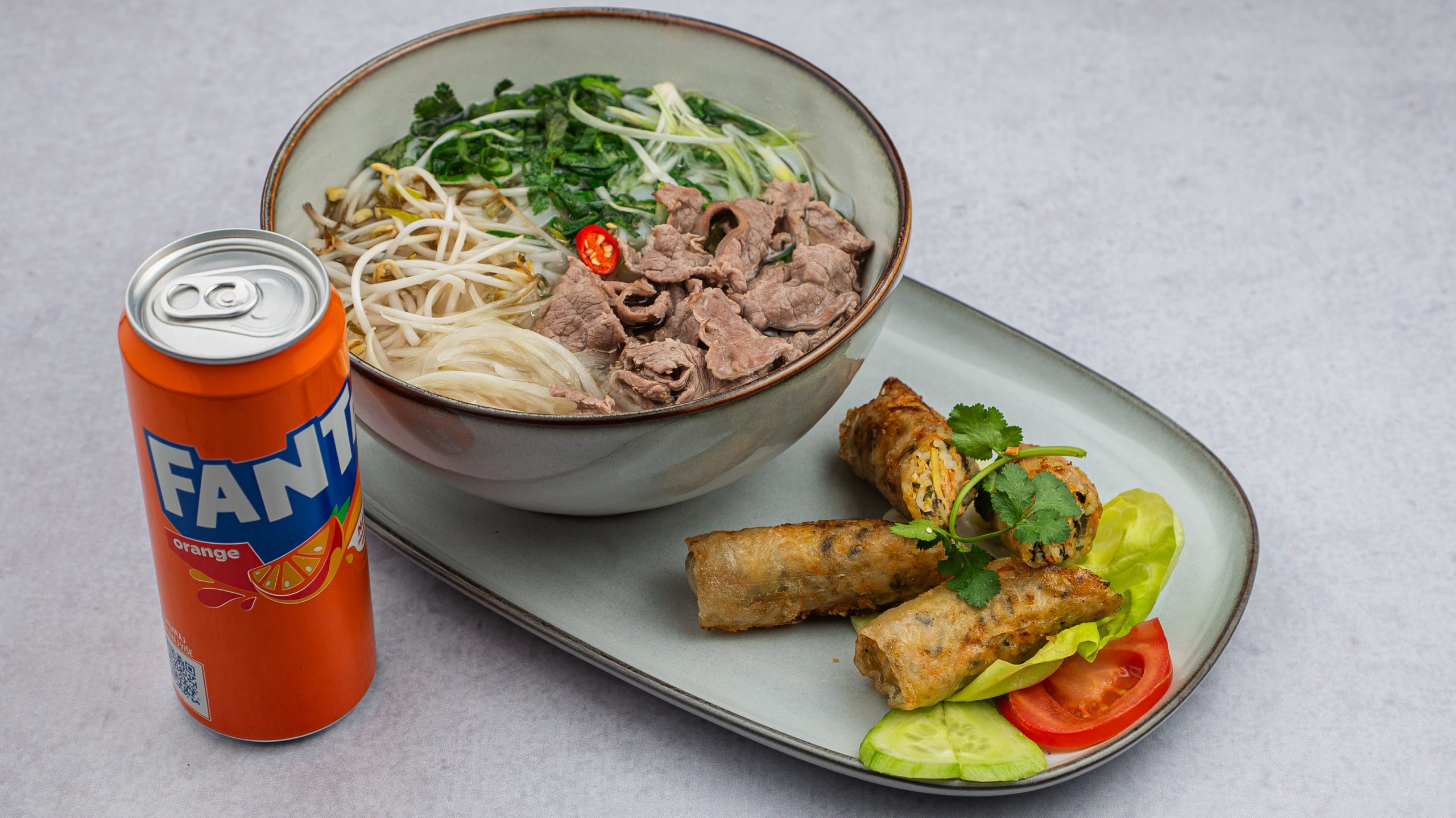 Pho bo + 2 pržene prolećne rolnice + piće po izboru